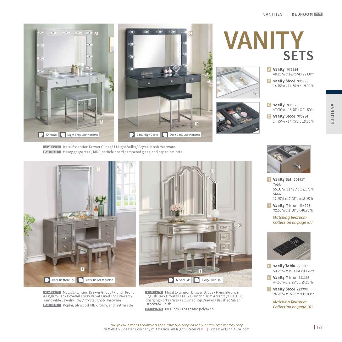 FEATURES: Metal Extension Drawer Glides / 11 Light Bulbs / Crystal Knob Hardware